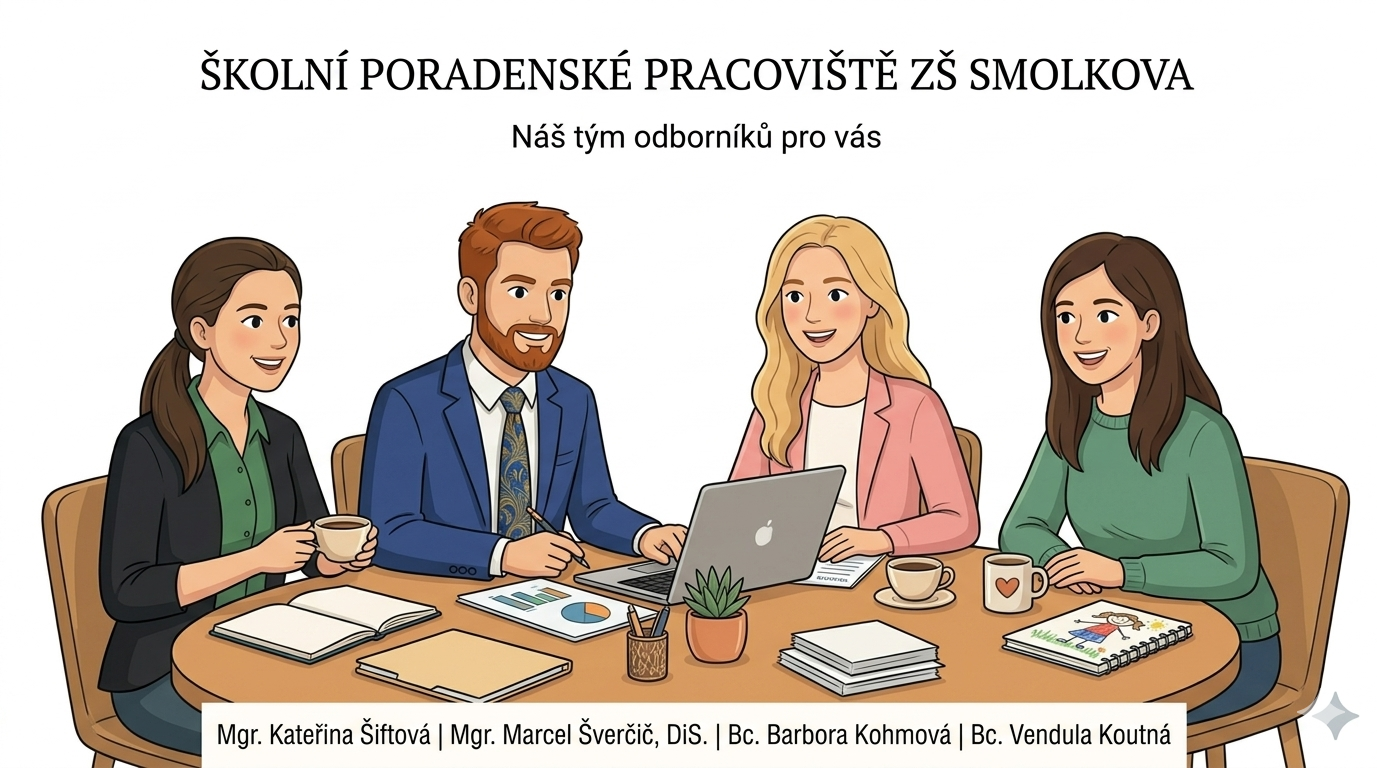 Školní poradenské pracoviště poskytuje bezplatné, odborné a diskrétní poradenské služby žákům, jejich zákonným zástupcům a pedagogům. Naším cílem je vytvářet ve škole takové klima, ve kterém se každé dítě může plně rozvíjet, cítí se bezpečně a v případě obtíží ví, na koho se obrátit.